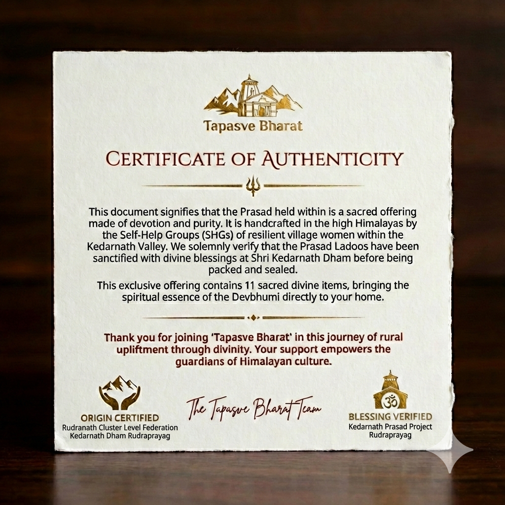 We are more than a spiritual conduit; we are a movement of rural upliftment. Every Prasad box is meticulously handcrafted by the resilient women of Self-Help Groups in Rudraprayag. When you invite Tapasve Bharat into your home, you aren’t just receiving a sanctified offering—you are empowering the families who guard the holy Himalayas.