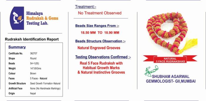 5 mukhi bade nepali rudraksh mala lab certified as shown in video